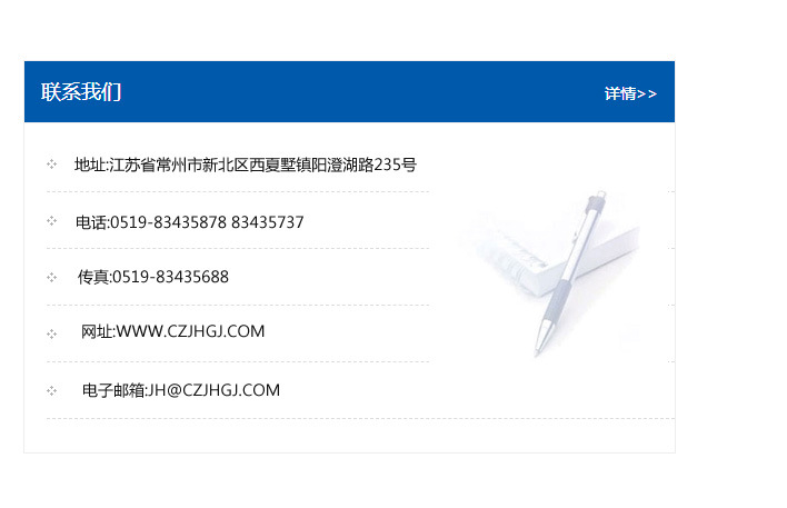 傳真:0519-83435688    郵編:213135    網址:WWW.czjhgj_com.fitch-sh.com    電子郵箱:JH@czjhgj_com.fitch-sh.com